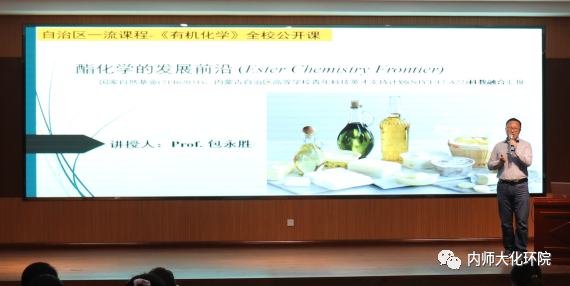 为提升我院学生的专业素质修养,拓展学生的学科视野,激发我院学生的学习兴趣。我院面向19级化学专业本科生,于2020年4月16上午在图书馆一楼报告厅举办了题为“酯化学的发展前沿”的公开课,本次公开课由我院包永胜教授主讲。