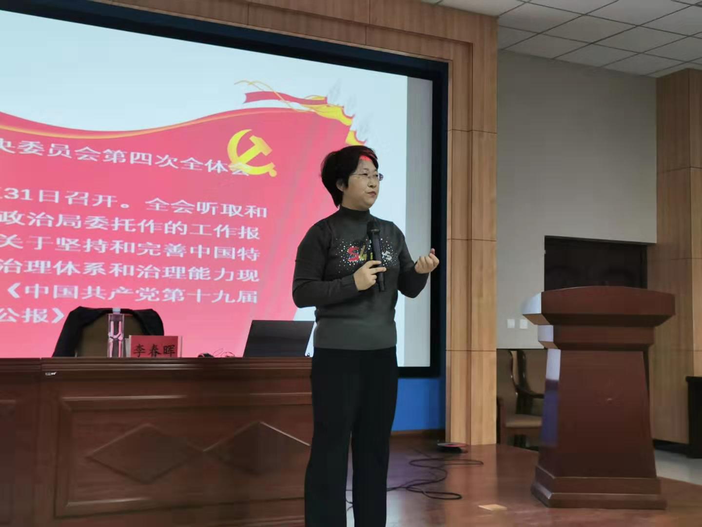 2019年11月14日,学院党委邀请马克思主义学院院长李春晖教授为我院师生党员作《聚焦党的十九届四中全会》主题党课,学院近160多位师生党员、积极分子参加本次党课,党课由学院党委副书记胡日查主持。