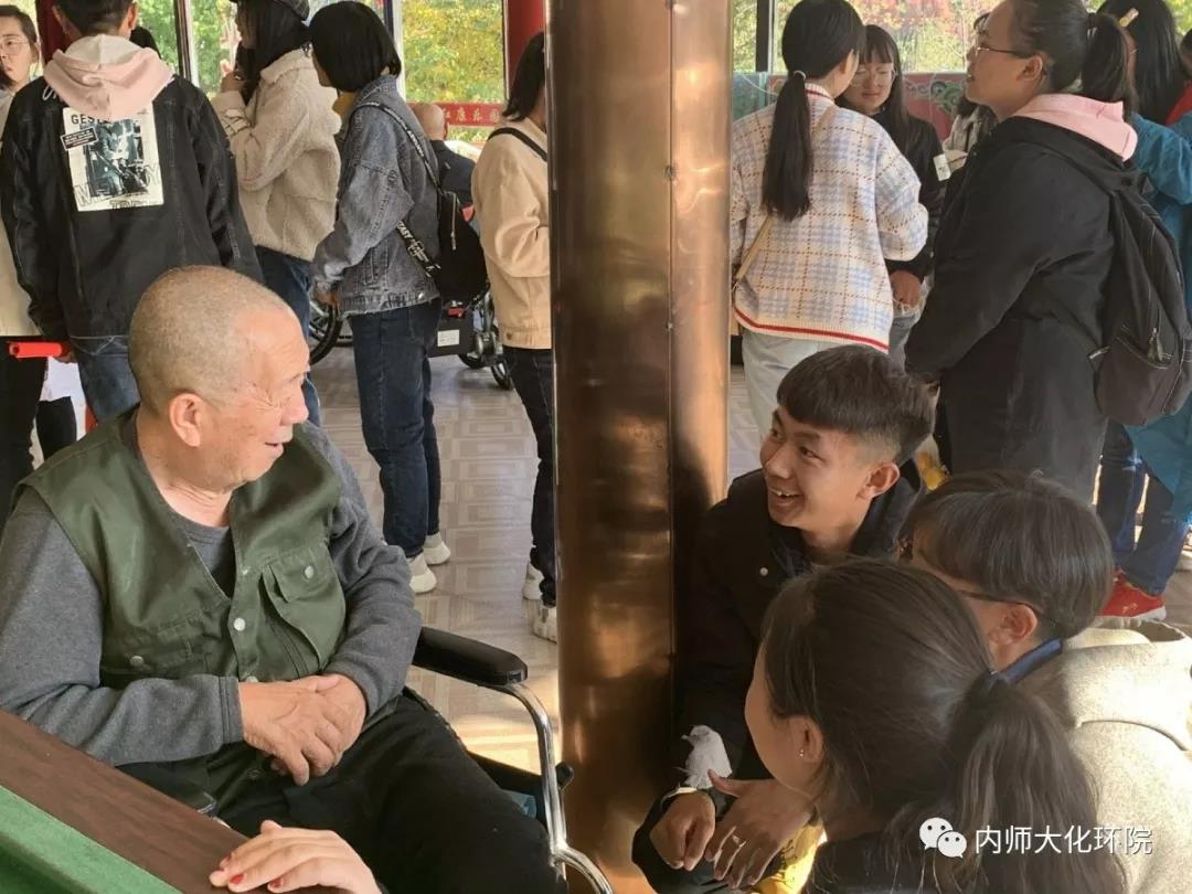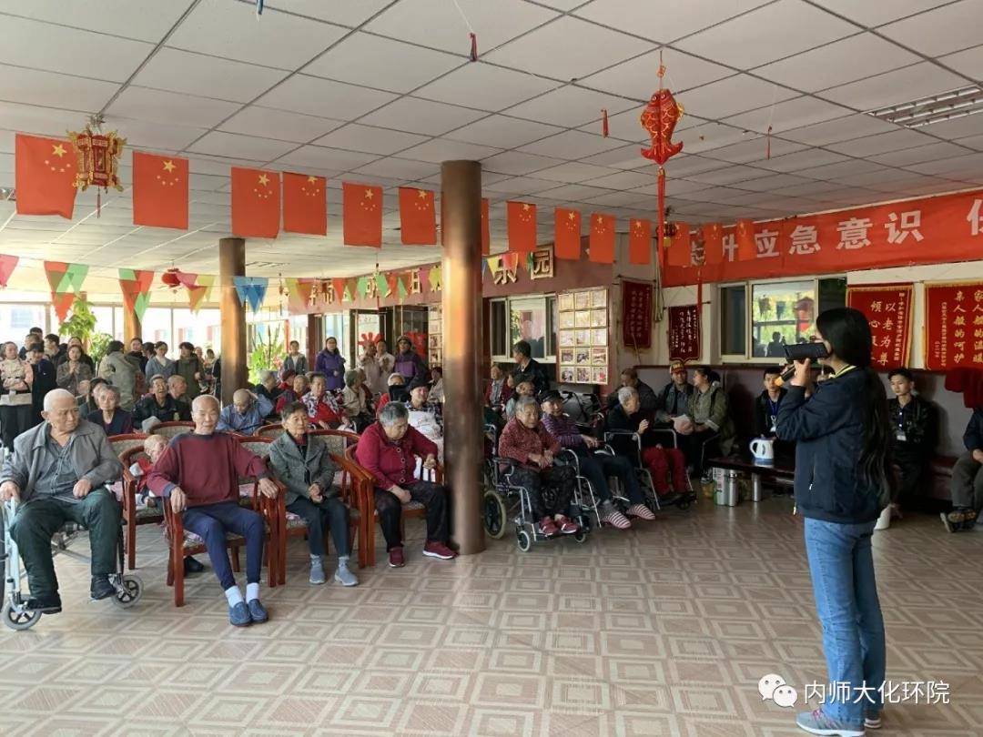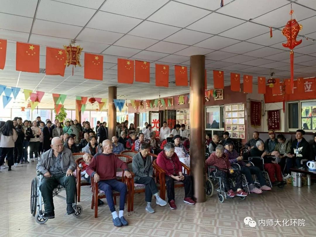 细心的党员同志和志愿者们不仅陪老人们聊天,关心他们的身体状况,为他们讲笑话,还准备了文艺节目包括蒙古歌曲《父母亲》、舞蹈、演讲、京剧和评剧,最后还有全体党员为大家共同合唱《我和我的祖国》。整个屋子充满着欢声笑语,老人们开心的像个孩子,激动的为大家鼓掌,还有上台为这些志愿者们唱歌的奶奶。是笑声驱散了老人们的孤独,是陪伴赶走了他们的寂寞。时光荏苒,一下午的时间转眼即逝,在大家离开时,老人们红着眼眶,恋恋不舍,虽然仅仅几个小时,大家却结下了深深的感情。