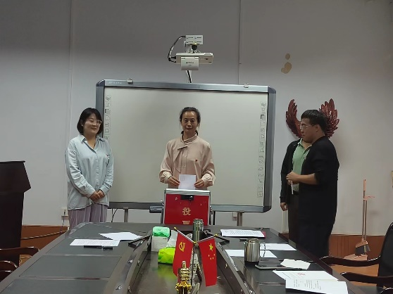 根据《中国共产党章程》规定,大会以无记名投票、差额选举的方式选举了3名同志为新一届支委会委员。新一届支委会召开第一次会议选举王奖同志为党支部书记,由王帅同志担任组织委员兼纪检委员,刘丹同志担任宣传委员兼统战委员。
