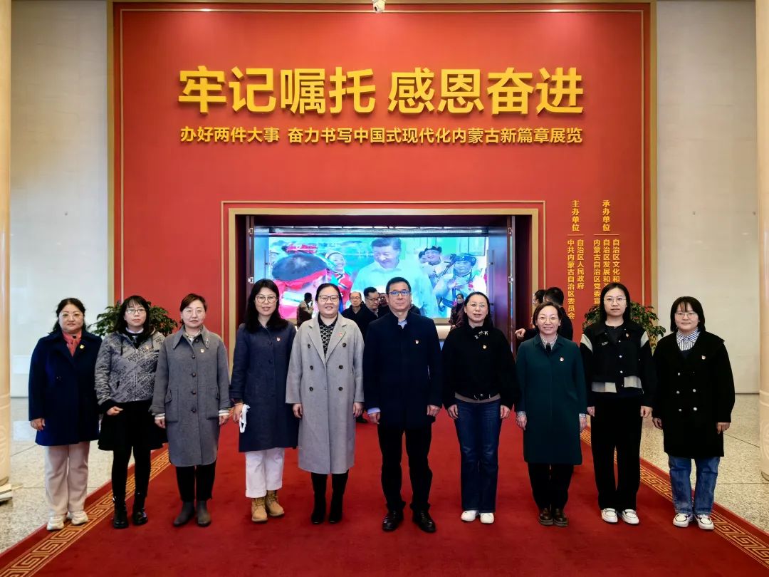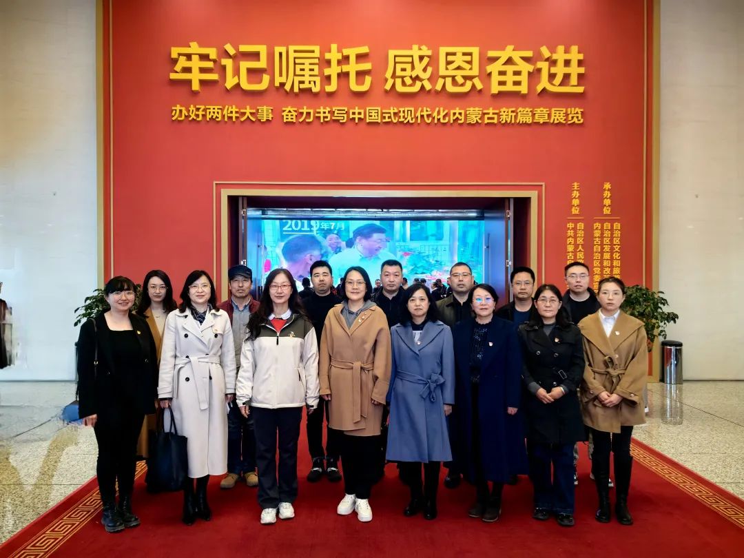 为进一步巩固提升主题教育成果,贯彻落实习近平总书记对内蒙古的重要指示精神,推动“感党恩、听党话、跟党走”群众教育实践活动走深走实,3月14日下午,我院党委在内蒙古展览馆举行“感党恩 听党话 跟党走”主题党日活动。全体教师党员和63名研究生党员参观“牢记嘱托 感恩奋进——办好两件大事 奋力书写中国式现代化内蒙古新篇章”主题展。