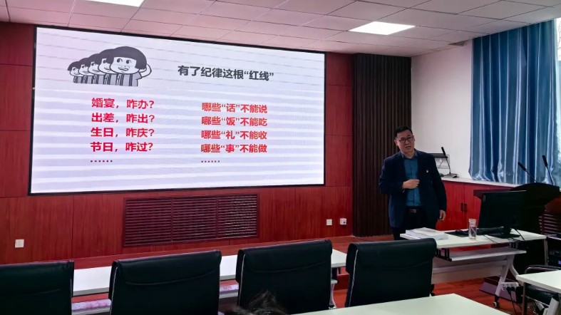 会上,林海河作题为《强化党纪学习教育 依规依纪依法执教》的专题讲座,他列举了部分典型案例,深刻剖析违纪案例,用身边事教育身边人,让党员、干部受警醒、明底线、知敬畏。