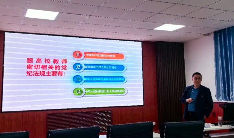 为切实上好党纪学习教育第一课,进一步加强师德师风建设,4月28日下午,院党委书记林海河在聚贤楼213会议室为全体教职工讲授党纪学习教育专题党课暨师德师风专题讲座。