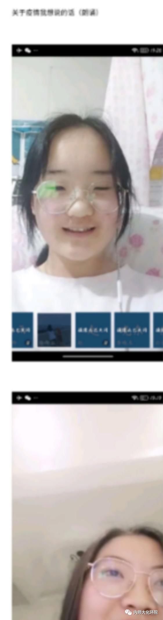 王培妤同学和杨雨丛同学还准备了朗诵表演——“对于疫情我想说的话”。她们用声情并茂地表达了对抗疫工作中逆行者的祝福,以及对战疫必胜坚定的信心。