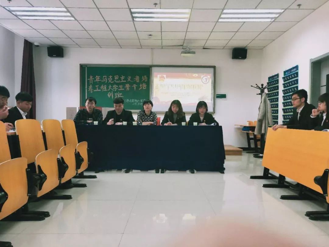 永利集团304于2019年3月22日下午在理工楼B306举行青年马克思主义者培训工程大学生骨干培训班的开班仪式,到场的有党委副书记、副院长胡日查老师,团总支负责人王淑娟老师、学院辅导员何朝鲁门老师和白赛纳老师、学生会副主席明明和宋志浩。