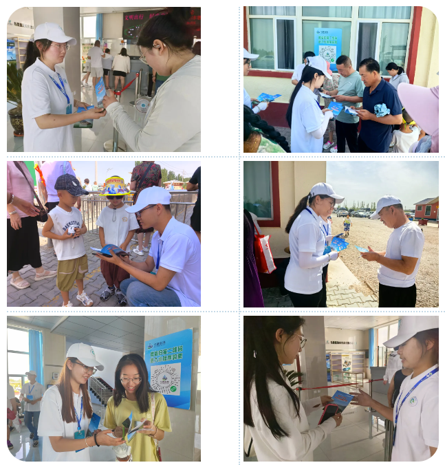 我院学子向游客们发放《黄河“几字湾”生态优先科普进万家》宣传手册,并向周围游客讲解了节水的重要性、黄河流域生态环境现状以及内蒙古黄河河运文旅融合发展等内容,倡导节约用水要从身边的小事做起,增强大家的环保意识和节水意识。同时就生态环境保护方面,向游客们介绍了乌梁素海治理和保护的方向:要用心治理、精心呵护,一以贯之、久久为功,守护好这颗“塞外明珠”。