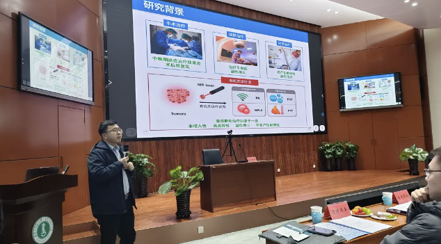 内蒙古大学王建国教授作了题为“近红外光诊疗试剂设计合成与应用研究”的主旨报告。