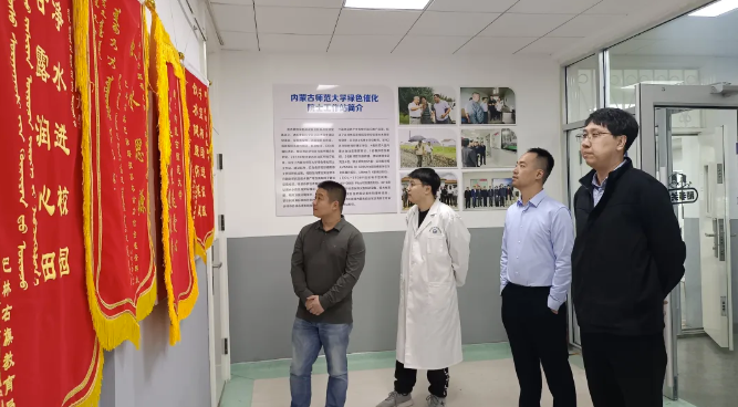 张隆、于连友实地考察了内蒙古自治区绿色催化重点实验室,王帅对实验室发展历程、取得的成果做了介绍。