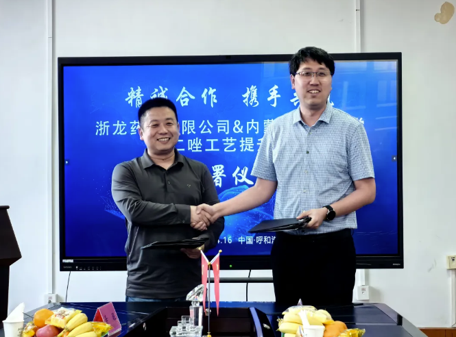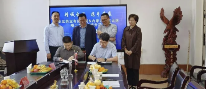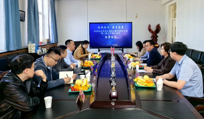 为贯彻落实国家、自治区关于产教融合、校企合作相关政策要求,进一步加强校企合作,深化科研产业化融合,推动科研-企业协同创新,落实自治区“五大任务”,4月16日,王帅教授团队与浙龙药业有限公司校企合作签约仪式在赛罕校区化学楼 315 会议室举行,浙龙药业有限公司总经理张隆、副总经理于连友,我院党委书记林海河,党委副书记、副院长范磊,党委委员、副院长包永胜及相关专业老师参加会议,会议由化学系主任王帅主持。