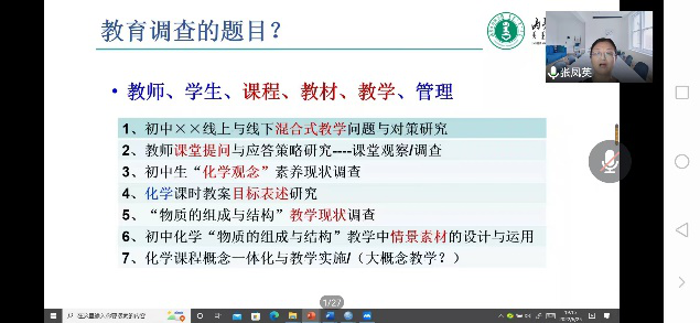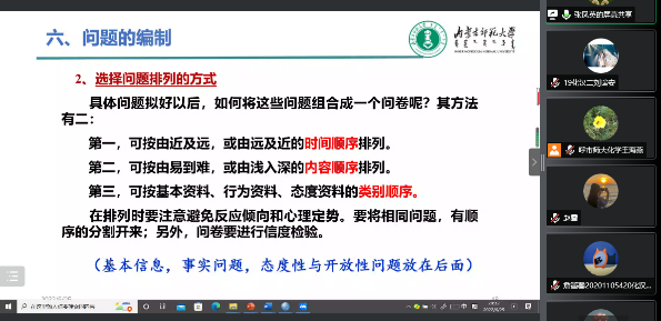 为提升我院实习生实习质量,强化实习工作中教育调查研究工作的有效实施,学院教学实践组邀请永利官网教育学院张凤英副教授为2019级正在进行教育实习的师范生,做了关于“问卷调查的设计与实施”的专题讲座。于6月25日晚7:00,通过线上形式进行。王海燕老师主持本次活动。张凤英老师从如何选题、常用的教育调查方法、问卷调查的设计与实施等方面结合实例进行了细致的讲解。
