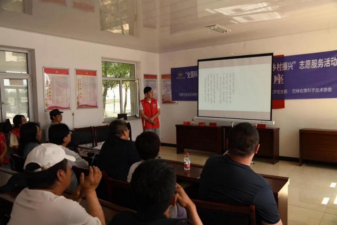 为深入贯彻落实习近平总书记关于教育的重要论述以及科普和科学素质建设的重要论述精神,为进一步提升农牧民群众生活质量,倡导科学健康生活 ,永利官网化学与环境科学院,内蒙古自治区绿色催化重点实验室,萨嘎拉副教授带领学生远赴赤峰巴林右旗归勒斯台嘎查,参加主题为“健康饮水科普讲座”的“全国科技工作者日”宣传既巴林右旗科普助力“乡村振兴”志愿者服务活动。巴林右旗科协党组书记、主席娜布其、大板镇党委书记乌云达来、驻村工作队、嘎查两委班子、以及农牧民群众参加了本次活动。