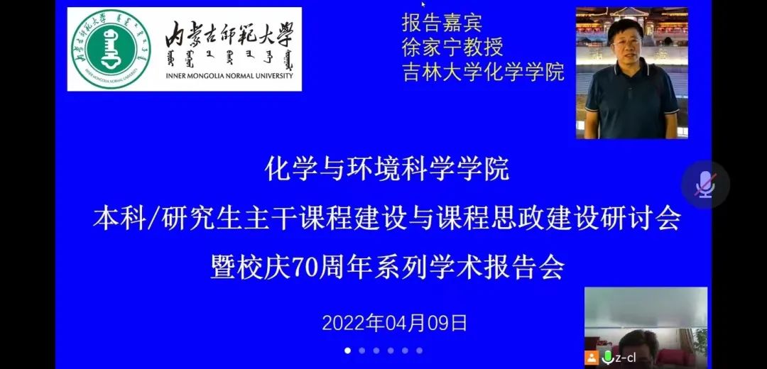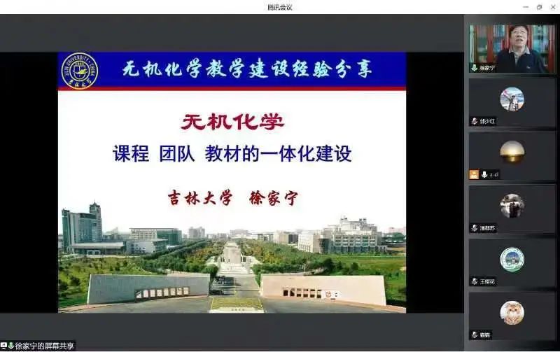 研讨会上,徐家宁教授从课程教学凝聚教学队伍、团队建设带动教学改革、教学改革支撑课程建设、课程建设推动教材建设、精品课程到一流课程、课程思政的思考等六方面介绍了吉林大学无机化学专业建设与发展的历程,并与参会教师就深入推进主干课程和课程思政建设工作展开研讨交流。