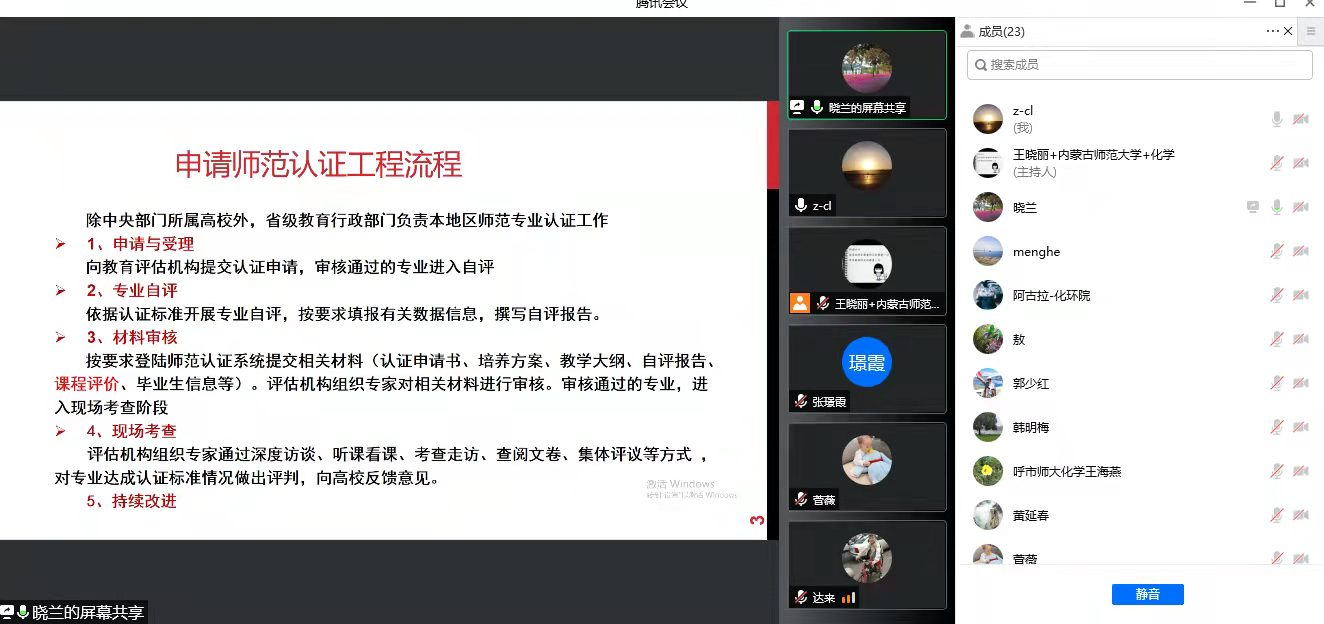 为进一步推进师范类专业认证工作,全面提高师范类专业永利集团质量和办学水平,2022年3月29日下午17:00-18:30,永利集团304邀请郝向英院长介绍了师范类专业认证经验交流会,学院的相关领导和全体化学专业骨干教师参加了会议,会议由詹传郎院长主持。