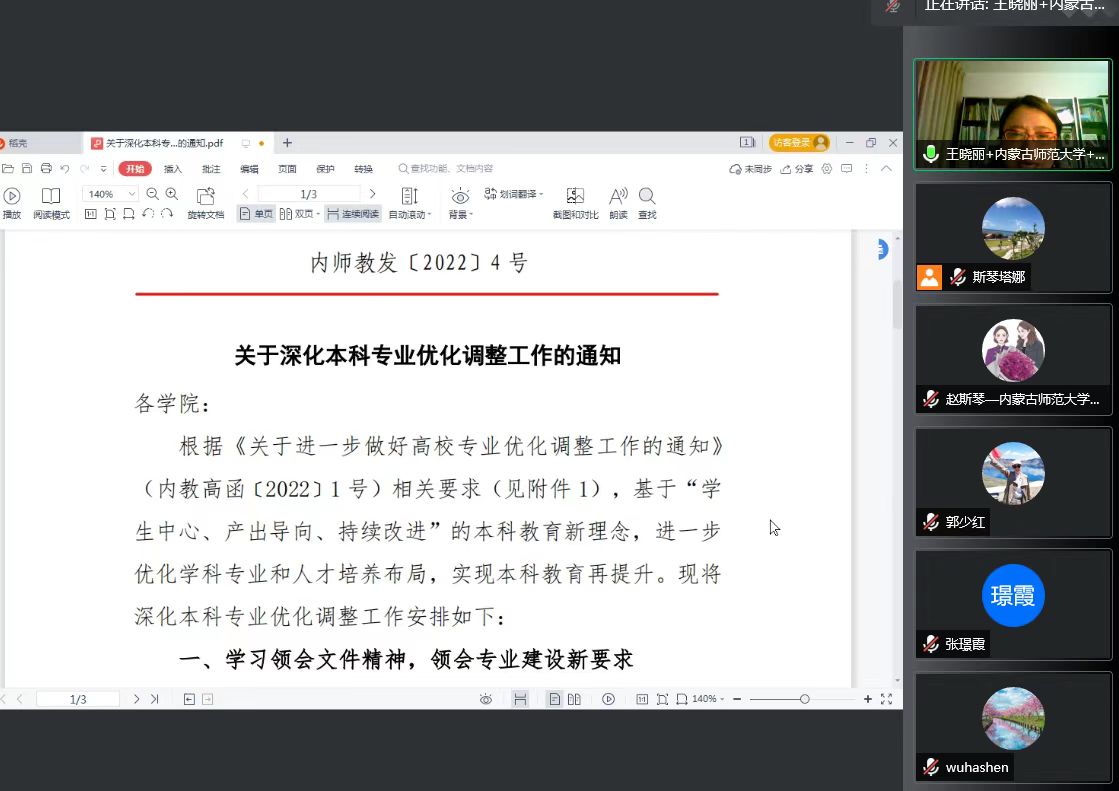 首先,化学系系主任王晓丽老师带领大家学习了《关于深化本科专业优化调整工作的通知》,领会文件的精神,研究讨论化学专业设置、定位、永利集团方案与自治区“十四五”经济社会发展需求之间的差距;从专业设置、培养方案、教学条件、教师队伍(生师比)、课程设置、质量保证体系等专业指标体系基本情况进行梳理,全面检视化学专业存在的问题;针对化学专业存在的问题,老师们集思广益,群策群力,为化学专业的优化调整建言献策。