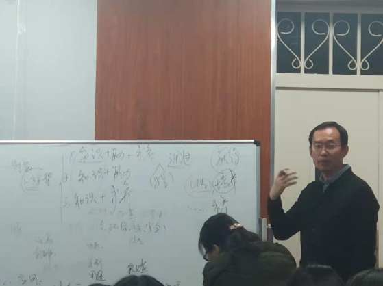 最后,刘老师还就目前的“双减”政策下如何发展“核心素养”做出了分析、如何书写教学目标、如何确定单元教学设计中的单元等问题与同学和老师进行了交流。