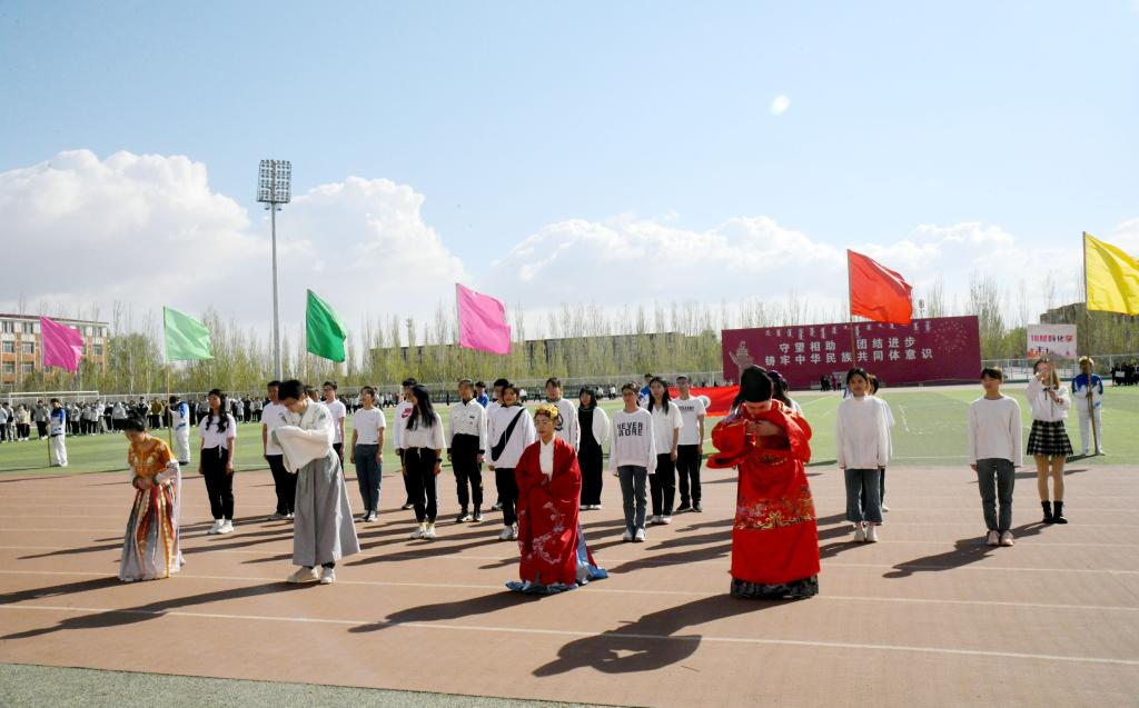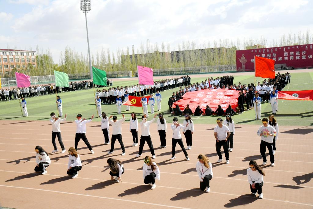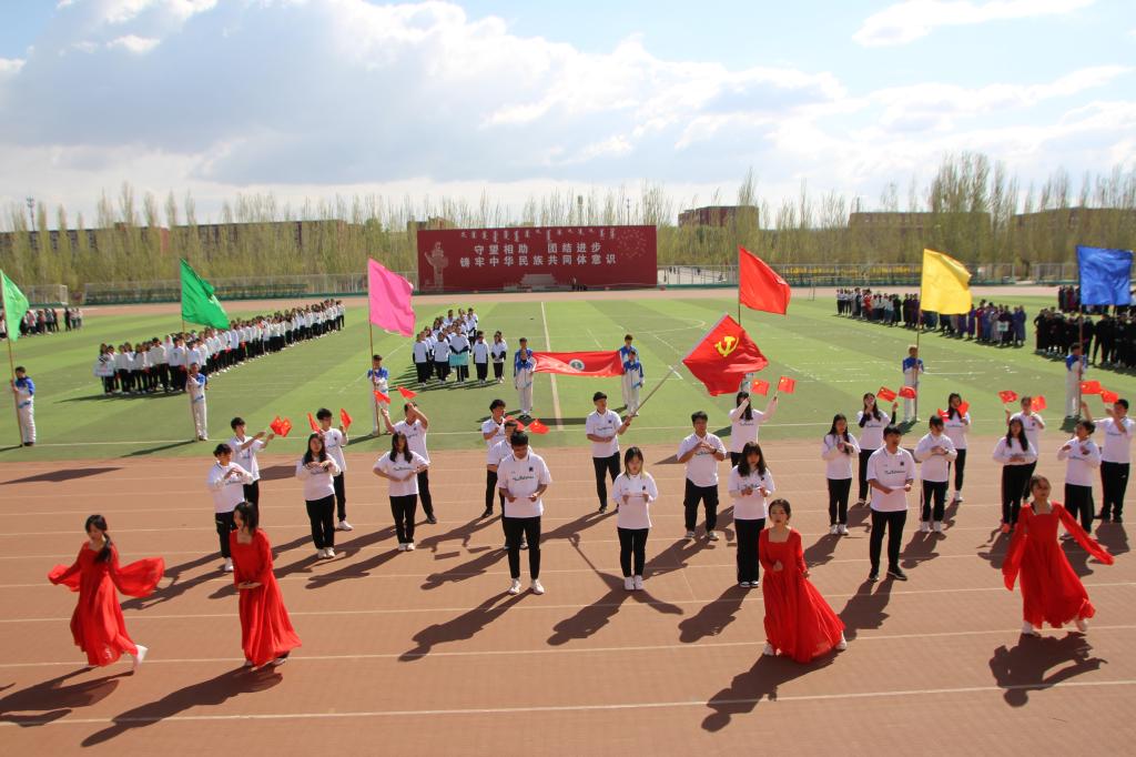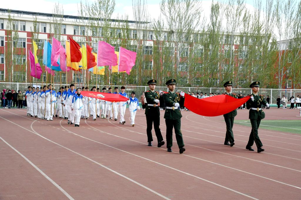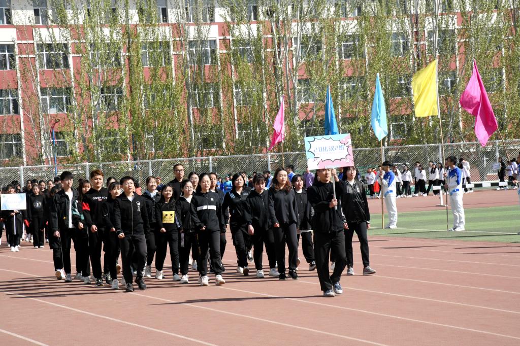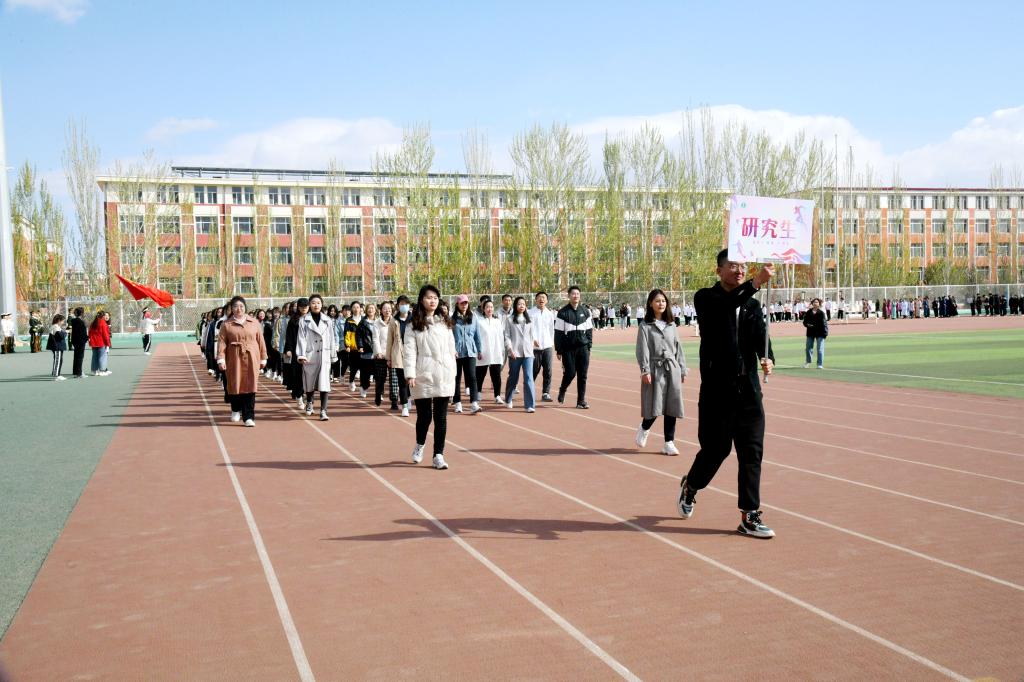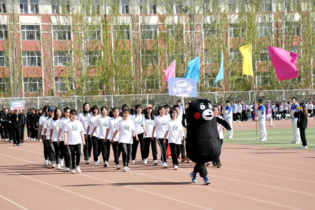 上午9时,伴随着激昂的运动员进行曲,国旗护卫队、彩旗方队、教职工代表队、运动员方队以及研究生方队依次入场。各入场方队以极具特色的服装、队列、道具展现着各班级的精神风貌,全体运动员排成“100”的字形来庆祝中国共产党成立100周年。