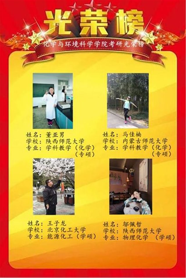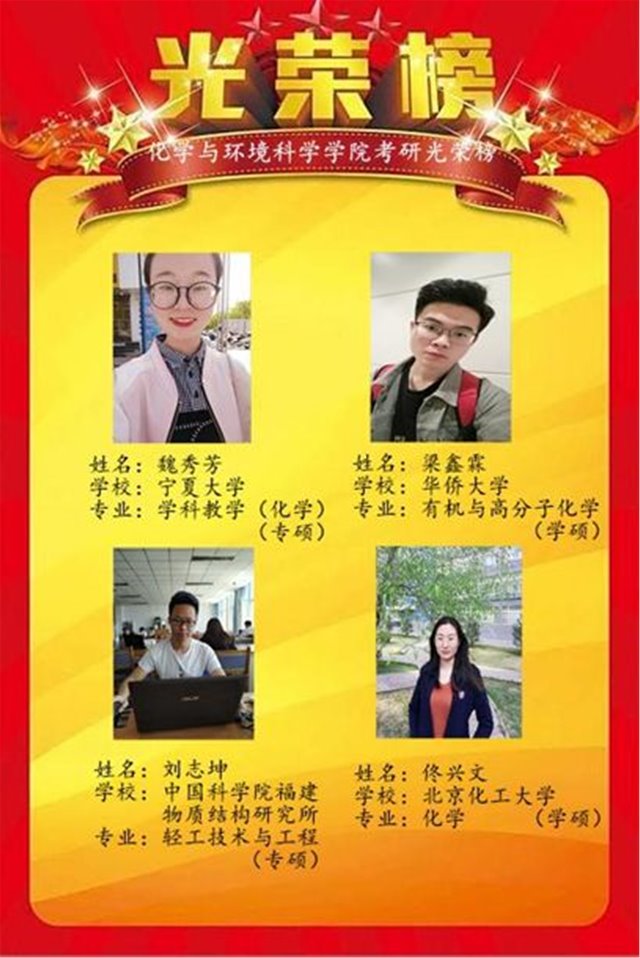 星光不负赶路人,天道酬勤佳音来。2019年,在学院党政领导和全院师生的共同努力下,坚定而睿智的化环学子不负众望,考研成绩再创辉煌,继续用青春书写着新时代的荣光。