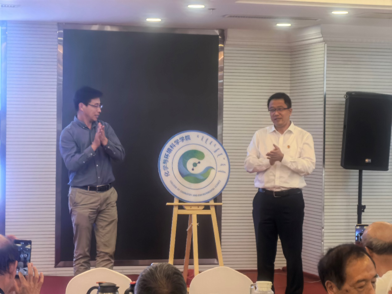 宫箭校长、詹传郎院长共同为学院院徽揭幕