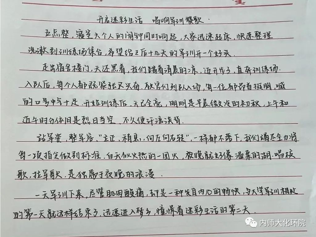 “青春因磨砺而出彩,人生因奋斗而升华。训练场上的一个个迷彩少年,不惧骄阳当空,昂首奋发,尽情展现青春活力,大放青春异彩。短短两天,迷彩少年们就对于军训感触颇深。