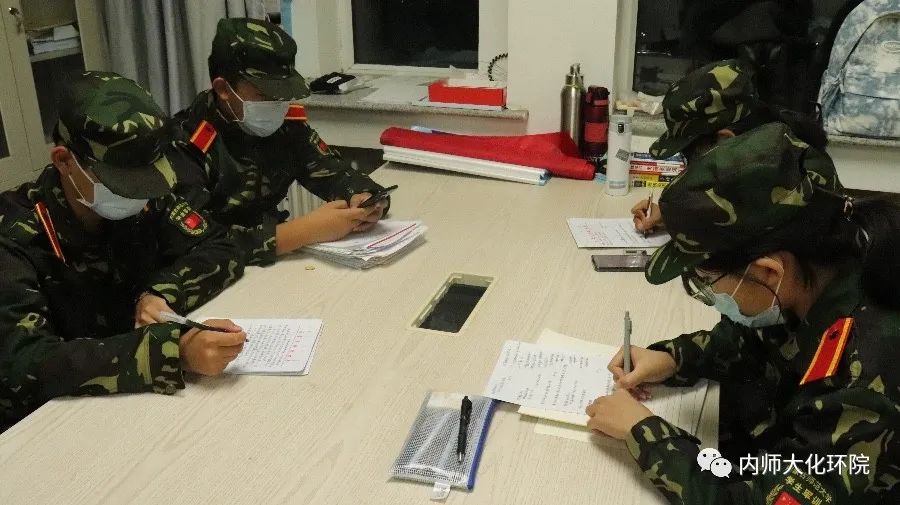 晓风初起,星月相依,在其他同学晨训之时,写作组的同学们早已就位。他们以梦为帆,以笔为剑,将满腔热血和满身才华化作一篇篇军训文稿、一句句动员标语,时时刻刻激励着正在军训的同学。那堆叠成山的草稿,油墨已尽的钢笔,在无声地赞颂着他们的努力。