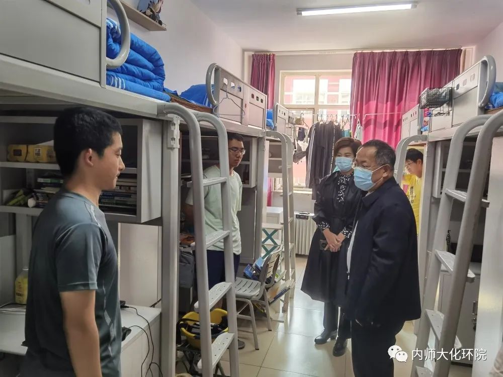 为保障校园安全稳定,做好疫情防控工作,深入了解学生在校情况,10月2日上午,院党委书记刘子忠教授及学生工作负责老师深入化环院学生宿舍,看望慰问在校学生。