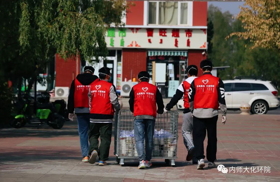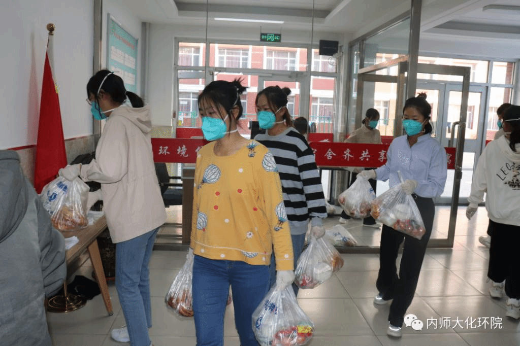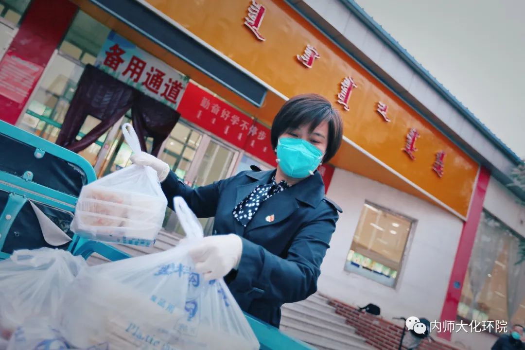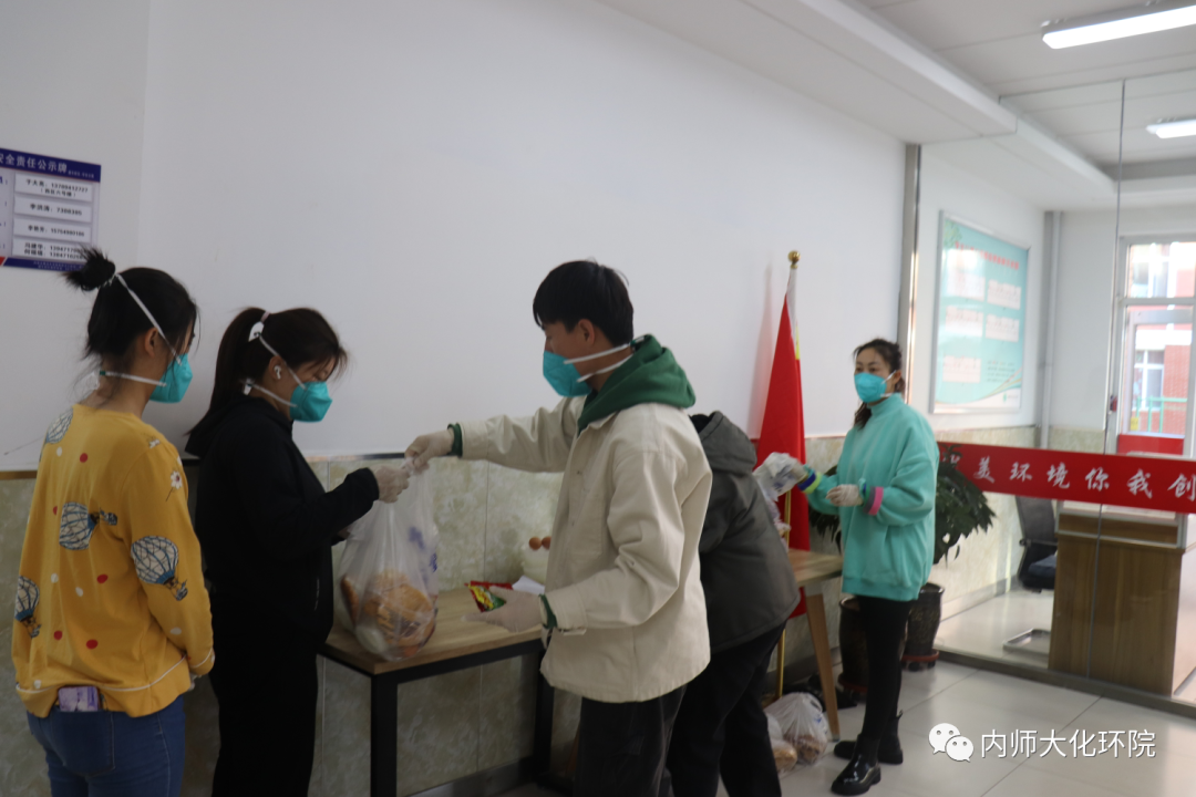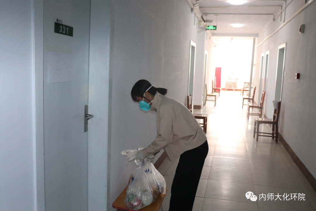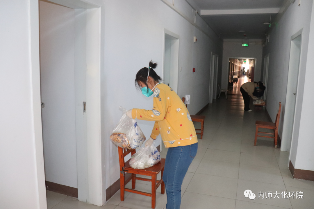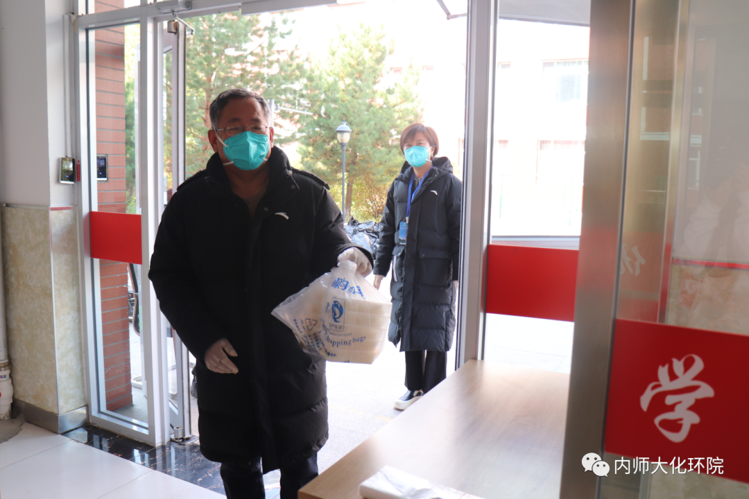 10月11日下午三点半,学校实施静默管理。从11日下午五点开始,院党委书记刘子忠教授、学生工作负责人范磊老师及学校的志愿者们在公寓楼外为师生送餐。辅导员阿斯汉夫老师、孙光明老师入住学生宿舍,与志愿者们一起在公寓楼内为各宿舍送餐。送餐过程中,老师及志愿者们都戴上了准备好的N95口罩和橡胶手套,为所有师生安全提供了有力的保障,他们轻轻敲门、悄悄离去,为同学们留下了温暖的饭菜和坚实的背影。