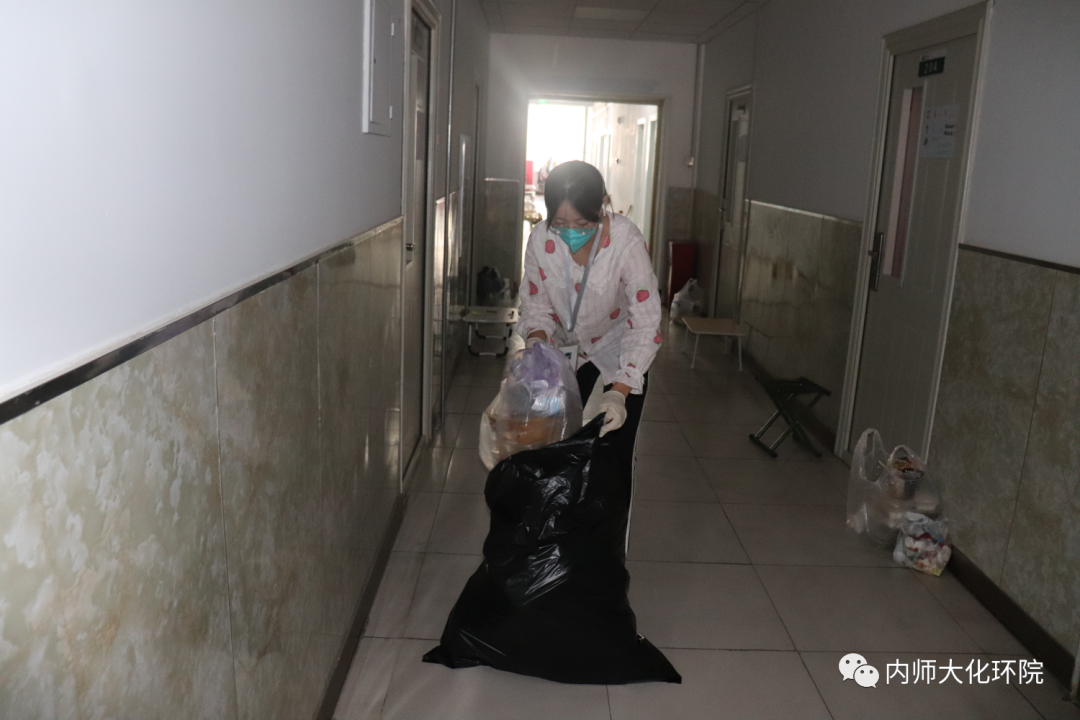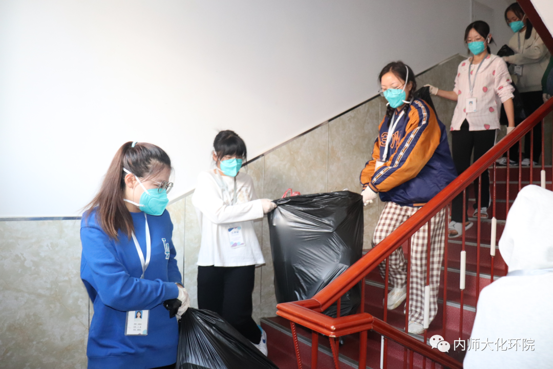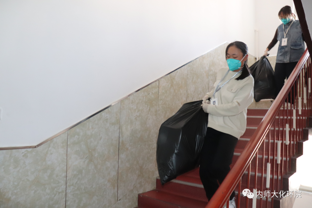 为营造干净卫生的宿舍环境,在同学们吃完饭后,志愿者们将餐盒及生活垃圾统一收集处理,为同学们提供了安全便利的服务,他们用自己的信念责任、坚守担当凝聚起众志成城、同心抗疫的磅礴力量。