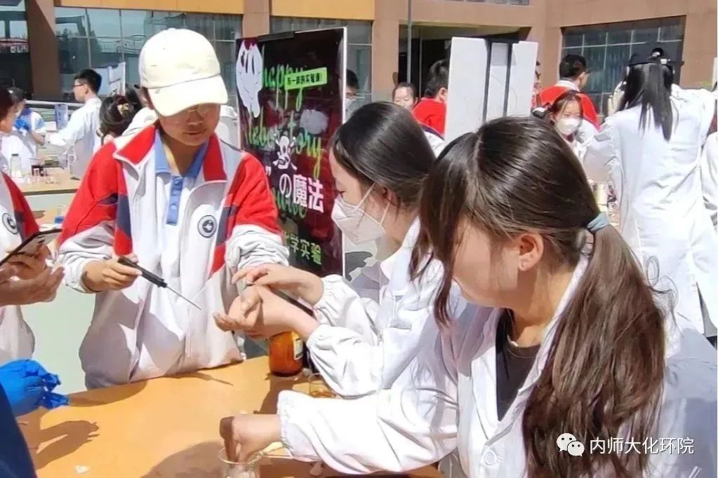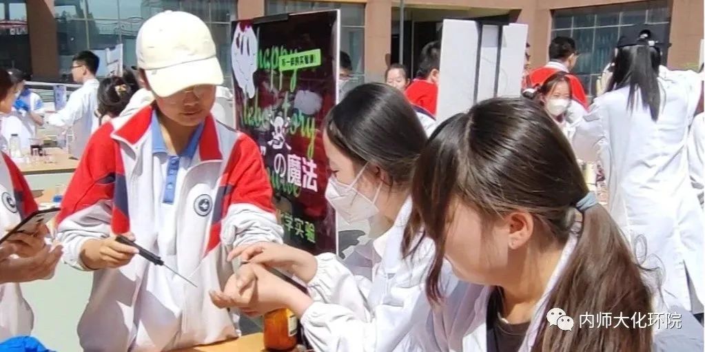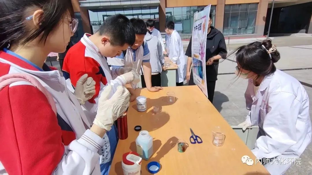 活动一:永利集团3042021级60名本科生组成20个科普实验小组,为中学生提供化学科普服务。通过观察、讲解、体验、探究等多种方式,带领大家走进科学,去体验丰富多彩的互动实验,感受科学的氛围。