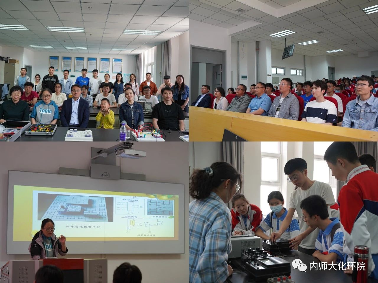 活动三:物理实验指导老师讲解了实验原理和注意事项,介绍经典的物理实验,如“倒车雷达报警系统”“单摆”“加速度”等,涉及到电学、力学、热学、光学等方面。通过动手实验,激发了学生们对物理的学习兴趣,培养了在生活中探究物理问题的思维能力和钻研精神。