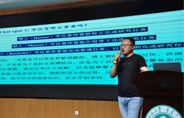 讲座先从小学到大学的知识系统的变化引入,生动形象的用圆圈演示的方式,改变了在场同学对于知识体系构建的固有认知,提醒在场师生自省自励,在不断提升自身学识的同时传播知识。同时也针对时下热门话题“ChatGPT是否会代替人类”表达了自身观点。他强调,人类在化学研究中具有不可撼动的领导地位。随后从日常生活中举例讲解化学常识,无论香飘十里的烈酒还是顽固难消的油渍,背后都有自己的深意,一个个晦涩难懂的化学原理变得生动形象,伴随着风趣幽默的讲解,现场气氛逐渐进入高潮。讲座后半段,包永胜提出了当代化学基础研究的“卡脖子”技术,随即向在场师生提出号召,希望可以看到更多学子在有机化学的路上深造耕耘,在科学研究路上开辟新路,实现人生价值。最后,在场学生积极提问,教授耐心解答,加深了师生对于投身化学研究的决心。
