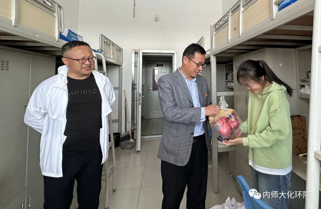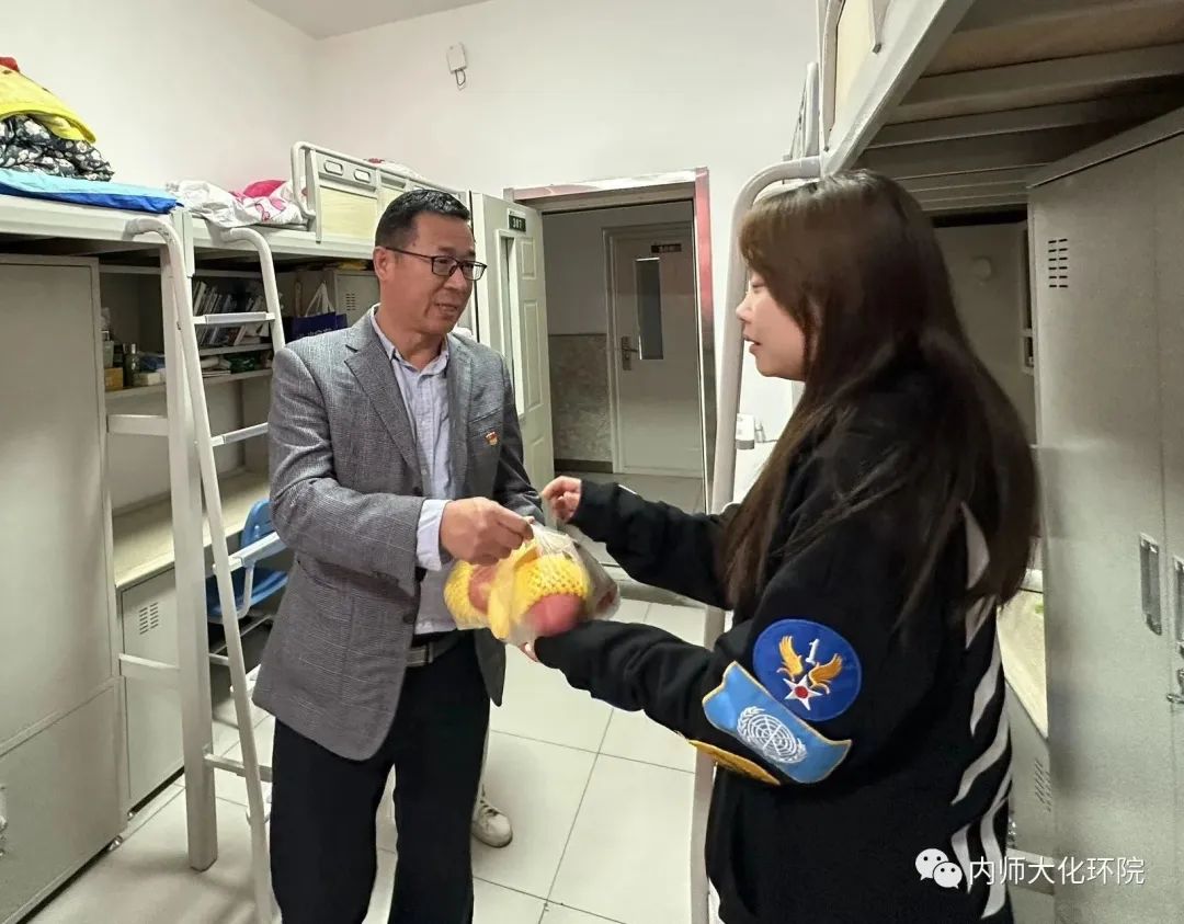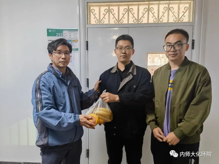 饼寄情思送温暖,师生同尝乐融融。一份份内师大化环院的礼物接踵而至,等待着同学们的签收。一箱箱香气四溢的月饼和新鲜的水果,也装着沉甸甸的化环院情意。在宿舍里,老师们与留校学生进行了亲切地交谈,询问大家的中秋假期安排,叮嘱同学们务必注意各类安全事项,将安全放在第一位。月满中秋,情暖校园,同学们虽然无法与亲人见面,但在温情满满的校园里,同样也感受到了来自学院和老师的深切关怀。