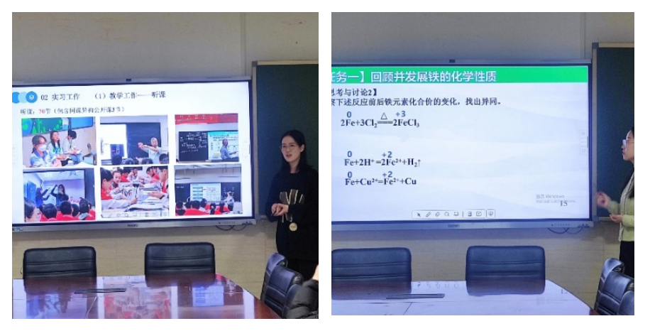 首先,陈慧蓉、方会2位研究生在汇报会上分别就自己在实习期间的学习、工作情况进行了详细介绍,并进行了10分钟的模拟教学展示。她们表示,很荣幸能在永利官网附属中学进行实习,从而有机会能听到很多优秀教师的优质课,这不仅为她们积累了丰富的教育经验,也让她们认识到了自己的不足,明确了自己要努力的方向,明白了学无止境,也明白了作为一名老师一定要紧跟时代步伐,不断更新教育理念。更重要的是,通过这次实习,她们认识到了教育事业的重要性,教育不仅仅是传授知识,更是培养人才、造就未来的重要工作。