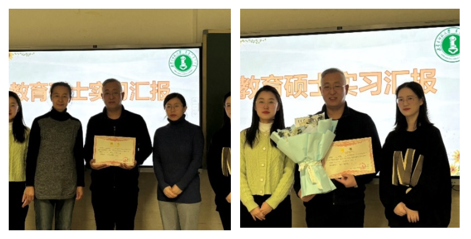 最后两位导师为白汇民老师颁发了研究生教育实习指导教师聘书,并就白汇民老师在实习期间对两位实习生的悉心指导表示了感谢。