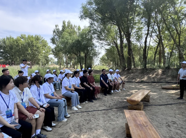 时光见证岁月成长,精彩铭刻奋进史册。为深入学习贯彻习近平新时代中国特色社会主义思想和党的二十大精神,引导和帮助青年学生在与现实相结合的“大思政课”中“受教育、长才干、作贡献,争做有理想、敢担当、能吃苦、肯奋斗”的新时代好青年,7月11日上午,我院暑期“三下乡”社会实践活动在内蒙古自治区巴彦淖尔临河区展开。在共青团临河区委书记张勇、副书记张志宇带领下参观了国营新华林场,我院党委书记林海河,党委副书记、副院长范磊,环境科学系教师李兴、辛旺,学就办主任白赛纳,学就办副主任孙光明,团总支副书记阿斯汉夫,以及20名本科生参加活动。