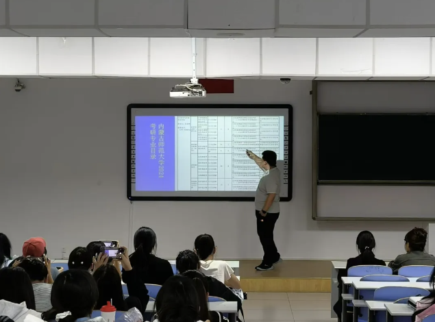 把握现在,决胜未来,考研助力,成就梦想。近年来,考研热持续升温,成为国内教育领域的热门话题。越来越多的大学生选择报考研究生,追求更高的学历和专业素养。为增加我院学子对考研的了解,增强学生考研的动力,营造积极向上的氛围。9月6日,我院邀请了海天教育王权老师为同学们讲授考研规划指导。244名学生参加了本次活动。