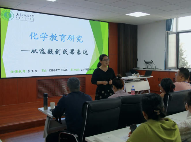 为助力教师在教学实践中更好地培养学生的化学核心素养,适应新时代对化学教育提出的新要求。11月14日,内蒙古自治区教学研究室体美劳教研部主任、中学化学教研员刘恒,我院学科教学(化学)及课程与教学论(化学)专业学位点负责人李玉珍教授作了前沿理念与实践经验的深度分享,国培计划(2024)的49名初中化学优秀教师聆听了讲座。