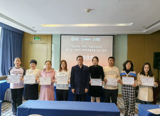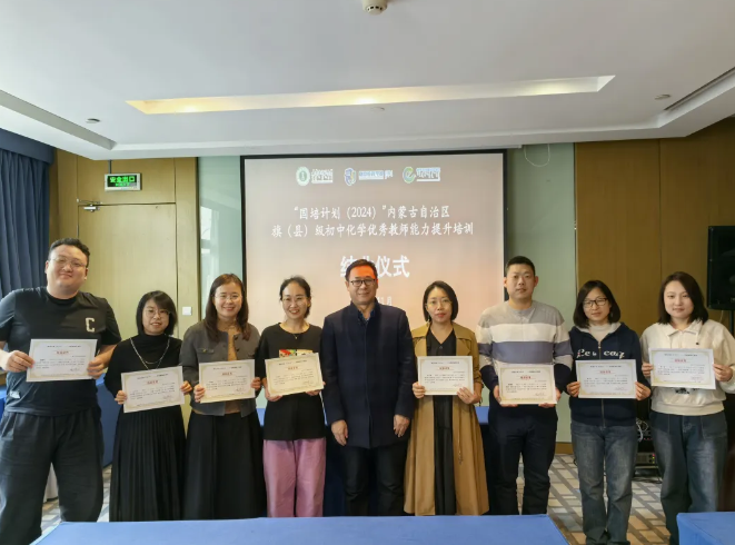 11月22日下午,为期两周的“国培计划(2024)”——内蒙古自治区旗(县)级初中化学优秀教师能力提升培训项目圆满落幕。院党委书记林海河,党委副书记、副院长、项目班主任范磊参加结业仪式。