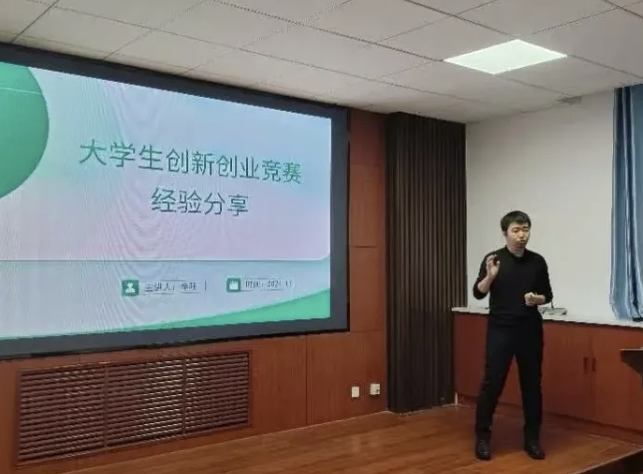 竞智探索源于思,奋勇启航成于志。为提高我院学生创新创业意识和能力,推进“以赛促教、以赛促学、以赛促创”,鼓励学生在创新创业中增长智慧才干,11月28日,我院组织开展“竞智启航”双创竞赛经验分享讲座。讲座邀请到了辛旺老师和我校优秀毕业生李春浩同学为大家分享大赛经验。院党委副书记、副院长范磊、学院部分拟参赛青年教师及学生参加讲座。