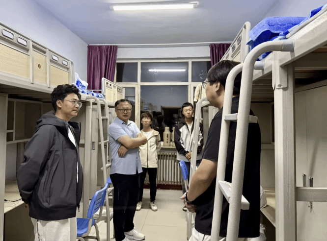 慰问过程中,学院领导与同学们亲切交谈,详细询问大家的假期安排、学习进度及生活状况。每到一间宿舍,学院领导都耐心倾听学生心声。鼓励大家合理规划时间,平衡学习与休息;假期不回家的同学们也要与家人保持联系,让家人放心;提醒大家关注天气变化,做好健康防护。