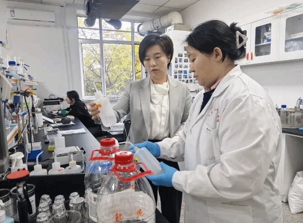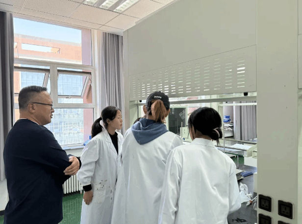 检查期间,院领导观摩了有机及无机化学实验课堂的学生操作情况。重点检查了实验室安全设施的配备与运行状态,包括通风橱、紧急喷淋器、灭火器等设备的完好性,并仔细查阅了实验室安全日志和危化品管理台账。