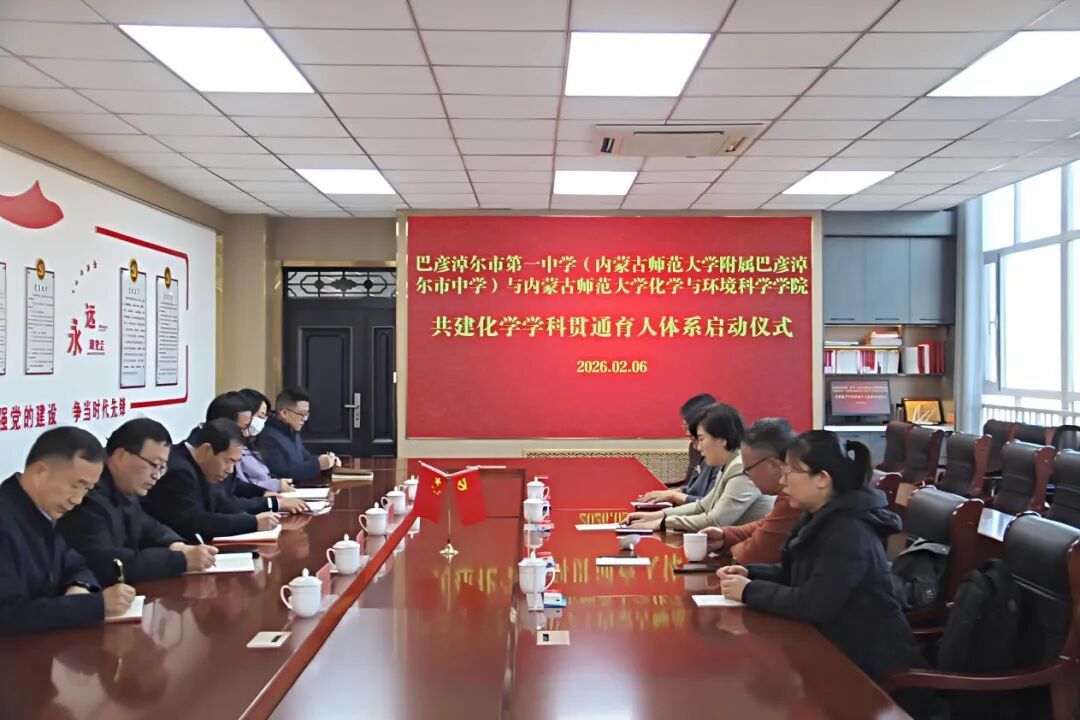 2月6日上午,我院与巴彦淖尔市第一中学(永利官网附属巴彦淖尔市中学)共建化学学科贯通育人体系启动仪式在巴彦淖尔市隆重举行。本次合作立足高校与中学协同育人核心目标,聚焦化学学科优质教育资源整合共享,深化双方既有合作基础,为学生成长成才搭建全新发展平台、开辟多元进阶路径。两校相关负责同志参加启动仪式。