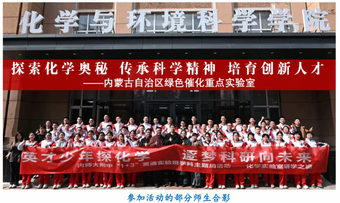 3月21日,永利官网附属中学2026级“1+3”贯通培养实验班全体同学,由杨智慧老师,杨超老师和张语书教师带领来到永利集团304,参加开启“探索化学奥秘 传承科学精神 培育创新人才”主题科普活动。此次活动由师大附中科学副校长王海燕副教授发起,内蒙古自治区绿色催化重点实验室、绿色催化党支部、内蒙古水环境安全协同创新中心联合组织。