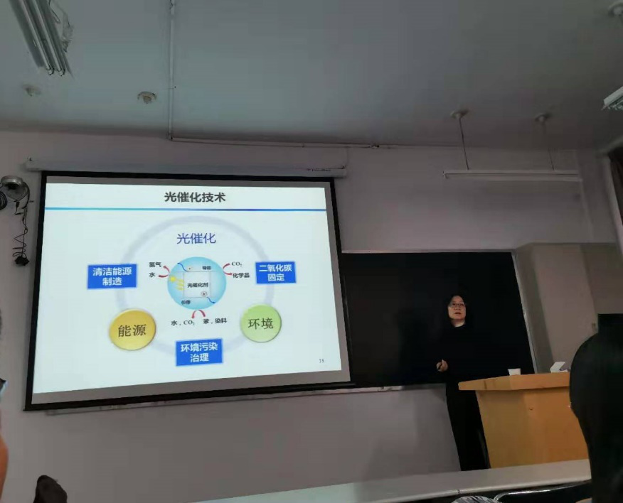 陶霞教授报告介绍了基于过渡金属硫/磷化物的复合光催化材料与制氢性能和构建有机无机钙钛矿光催化制氢新材料的研究。报告结束后,陶霞教授与老师和研究生同学们围绕报告内容进行了深入的学术交流与讨论。
