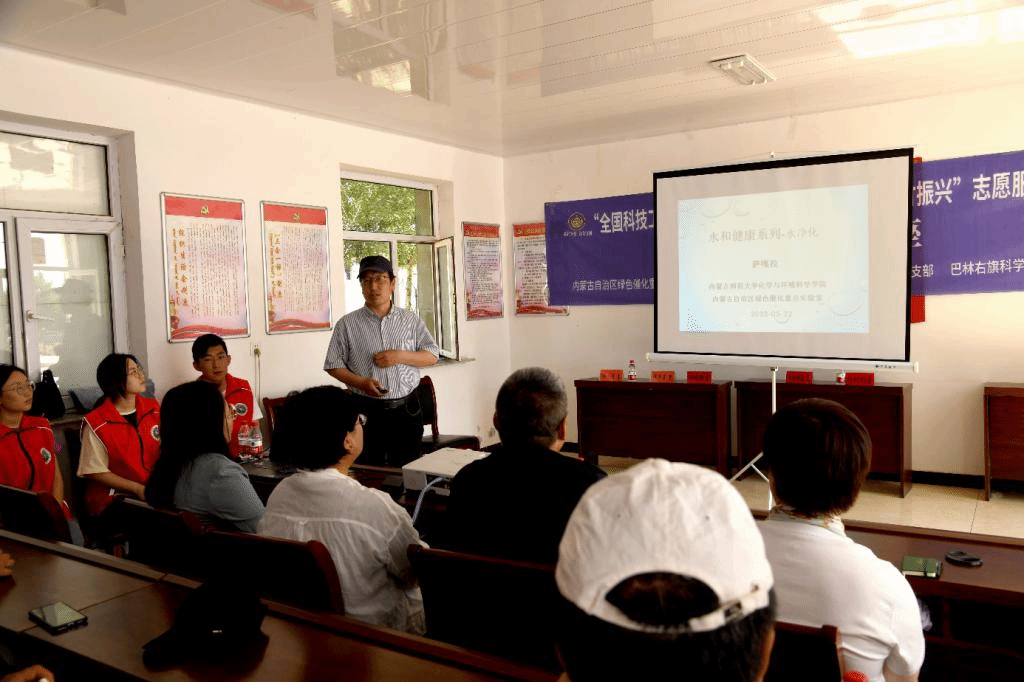 健康饮水科普讲座—“全国科技工作者日”宣传既巴林右旗科普助力“乡村振兴”志愿者服务活动2022-05-29为深入贯彻落实习近平总书记关于教育的重要论述以及科普和科学素质建设的重要论述精神,为进一步提升农牧民群众生活质量,倡导科学健康生活 ,永利官网化学与环境科学院,内蒙古自治区绿色催化重点实验室,萨嘎拉副教授带领学生远赴赤峰巴林右旗归勒斯台嘎查,参加主题为“健康饮水科普讲座”的“全国科技工作者日”宣传既巴林右旗科普助力“乡村振兴”志愿者服务活动。巴林右旗科协党组书记、主席娜布其、大板镇党委书记... -
