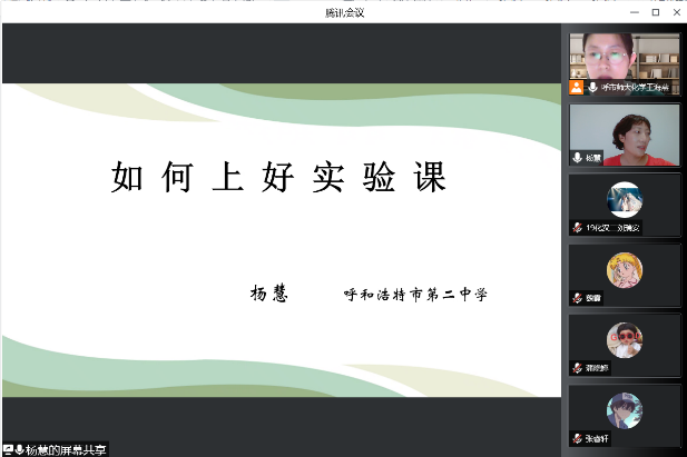 教育实习专题讲座报道2022-07-03为提升我院实习生实习质量,拓展实习生的实习视野,强化师范生对实验教学的认识与思考,教学实践组邀请呼和浩特市第二中学杨慧老师做关于“如何上好化学实验课”的专题讲座。在7月2日19:30-22:00,通过线上方式进行,参会的有2019级、2020级、2021级化学专业的本科师范生和学科教学研究生共三百多名同学参加本次活动。杨慧老师围绕新教材的演示实验、学生分组实验、探究实验和生活趣味实验,解析实验操作的技巧,解读高考实验... -