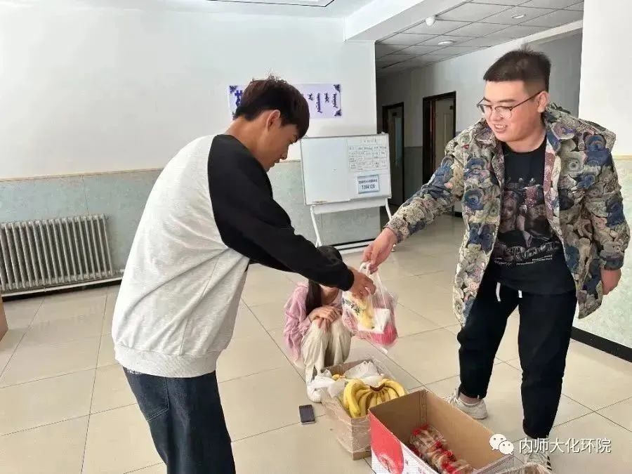 中秋佳节送关怀,浓浓真情暖人间2023-09-28金秋送爽,丹桂飘香,又是一年中秋月,恰逢人间好时节,月未圆,情先到。为了让留校学生度过一个难忘而欢乐的节日,9月29日上午,我院党委书记林海河,副书记、主持工作副院长詹传郎,副院长包永胜、焦燕以及学生工作负责人范磊老师进行了中秋慰问活动,为留校学生送去了中秋月饼和水果,情系学子,温暖人心,同时也寄托了对莘莘学子的节日问候及温暖祝福。饼寄情思送温暖,师生同尝乐融融。一份份内师大化环院的礼物接踵而至,... -