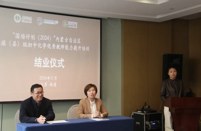 国培计划(2024)―内蒙古自治区旗(县)级初中化学优秀教师培训班跟岗实践活动圆满结束2024-11-23为了革新教师的教学理念,促进不同地区教师之间的交流学习。11月22日,“国培计划(2024)”一内蒙古自治区旗(县)级初中化学优秀教师能力提升培训班的49位参训教师在江苏省南通市启秀市北初级中学跟岗实践圆满结束。教师既是讲授者,又是学习者,听课作为学习过程中的重要一环,参训教师们分组进入不同的课堂听课。通过随堂进班听课,参训教师们表示体会到了教育的真谛和学习的意义,坚定了学习目标和方向 -